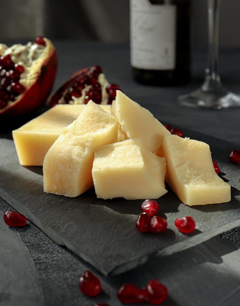 Italian: Fossa, Pienza Pecorino ripe in walnut’s leaves (Tuscany), ripe Sicilian Pecorino, Ricotta ripe in new-mown hay (Piedmont), Bufala and Burratina (Apulia).Italian and International cheeses’ assortment.