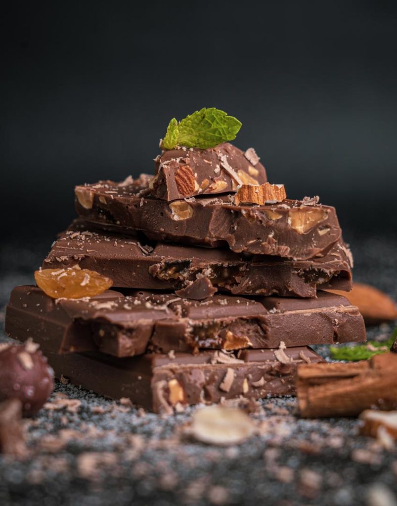 Chocolate coating both in blocks and in tablets used in workroom: 35% cocoa white coating, 70% Guanaja plain chocolate, 66.5% Caraibi plain chocolate, 85% Abinao plain chocolate, 100% extra cocoa mass, 40,5% Milk chocolate, salted spiced Xocopili chocolate, Sweet spiced Xocomeli chocolate, 65% Xocoline plain chocolate without sugar, orange-, strawberry-, vanilla- and lemon-flavoured chocolate.
