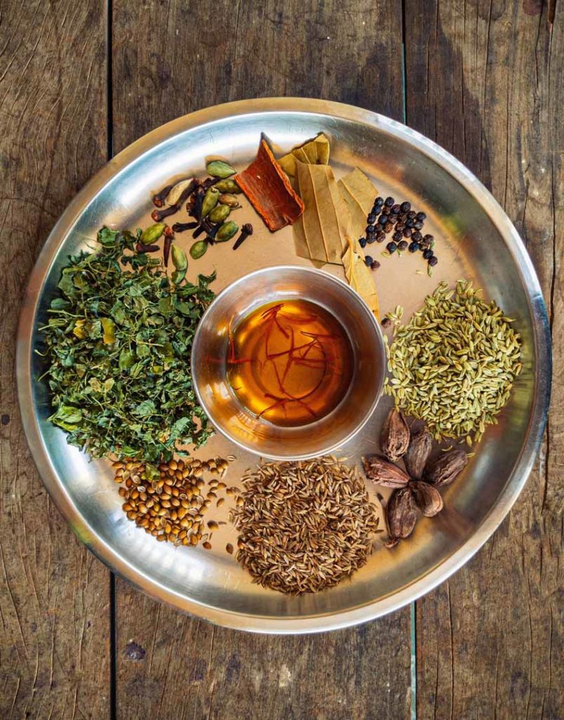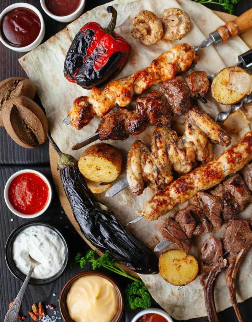 Chicken and veal demi-glace. Duck leg in confit, boneless and stuffed quail, boneless and stuffed guinea-fowl legs. Meat bowls: pistachio guinea-fowl, pigeon with mushrooms, rabbit with plums.